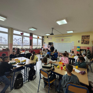 Učenici su tokom druženja uživali u svježem voću, grickalicama i sokovima, što je dodatno uljepšalo atmosferu i dalo im novu energiju za kreativne aktivnosti i igru.